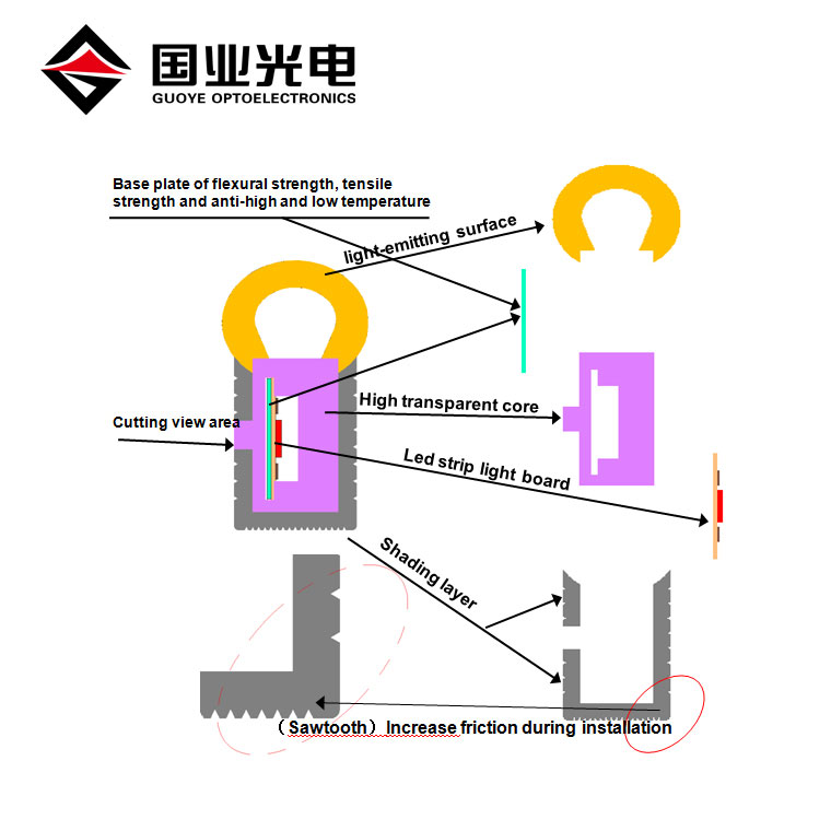 Вот точка отреза на задней части неоновой ленты, ее легко увидеть, и ее можно отрезать от точки. Мы можем предложить торцевую заглушку и кабель, чтобы припаять светодиодную ленту к разной длине и подать питание для работы.